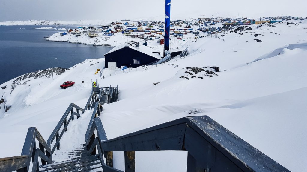 Pe drumul nostru in coborare, dam de un afis batut in lemn. Partea naspa nu e ce scrie acolo, ci… cum sa citesti al 4-lea cuvant din propozitia groenlandeza 🙂 Ulorianartorsiortitsisinnaavoq. Ia-o p’asta…